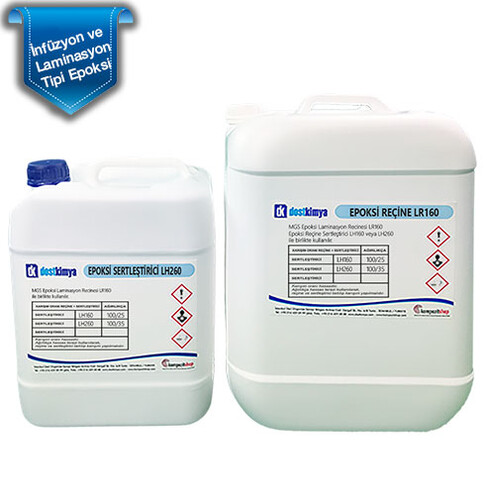 Laminasyon tipi MGS Epoksi Reçine L160 sistemlerimiz ileri kompozit parça imalatlarında dünyada çok yaygın olarak kullanılan Hexion firmasının ürettiği, yıllardır kendisini ispatlamış, havacılık, otomotiv, marin, uzay, rüzgâr pervaneleri ve savunma sektörlerinde kullanılan ürünlerdir. Laminasyon Reçinesi LR160 ve Sertleştirici LH H260S karışım oranı: 100:36 +-2gr’dır (bu sistem kullanıldığında +80 °C Isıl işlem uygulanması gerekmektedir) Havacılık sertifikasına sahip olan MGS L160 sistemi çok büyük olmayan infüzyon uygulamalarında rahatlıkla kullanılabilir. Oda sıcaklığında kürlenir ve daha sonra yapılacak postkür işlemiyle sivil havacılık standartlarını sağlayan parçalar elde edilebilir.